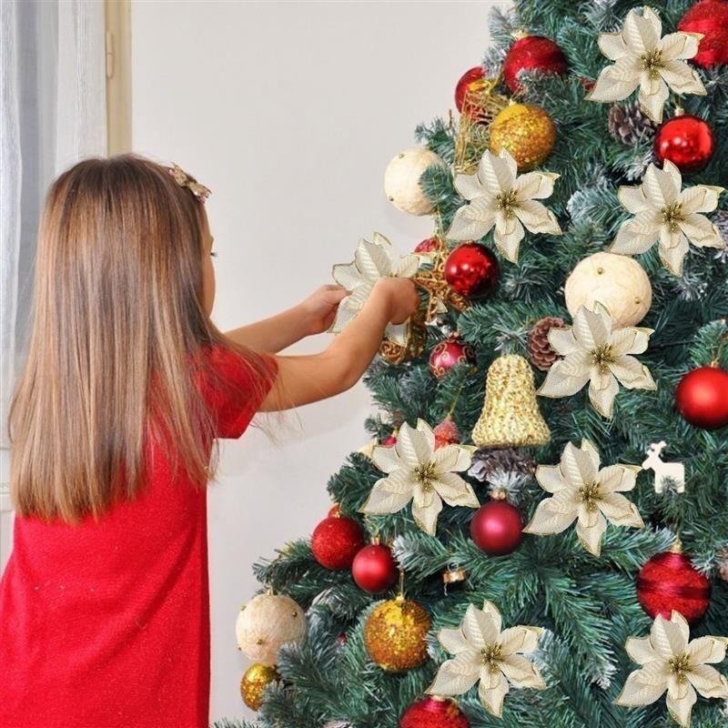 装飾 花 ラメ クリスマス 10点セット ゴールドorシルバー ツリー 造花 オーナメント カラー ポインセチア 飾り 室内 デコレーション 装飾メリークリスマス クリスマス用品 クリスマス 豪華セットクリスマスツリー 飾り付け 飾り Aio Online Store クリスマス